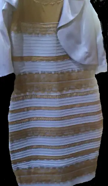 ALTIN SARISI-BEYAZ GÖRENLER BURAYA!Deney 1: Fotoğrafın bir çıktısını alın. Makasla, elbisenin arka fondaki ışığa uzak bir kısmından bir parça kesin. Ve kestiğiniz parçaya bakın! Gördüğünüz, işte o elbisenin gerçek rengi olacak...