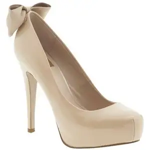 Krem tonlarında topuklu bir ayakkabı ve ayakkabının ön kısmında kurdelemsi bişiy veya dore tonlarında süsler olsa güzel görünür gibime geldi.