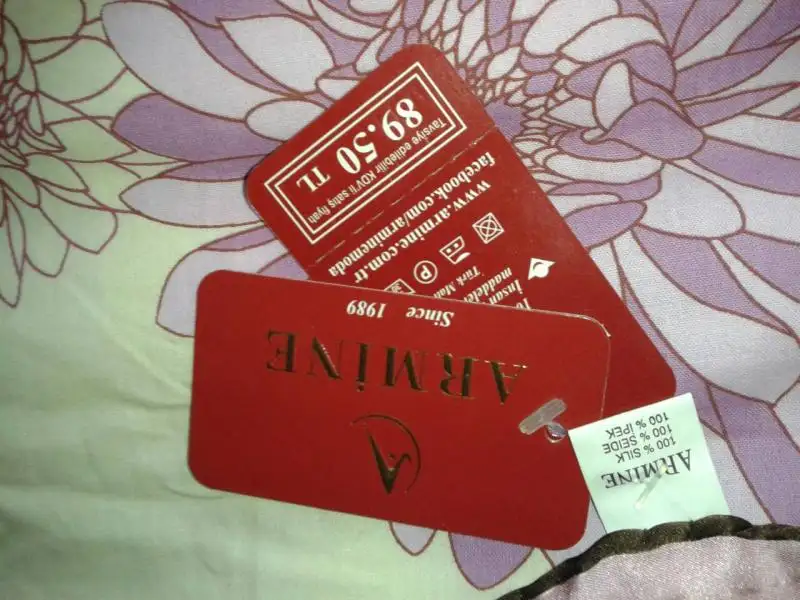 armine marka cok guzel ipek esarp etiketi duruyo hc takilmadi fiyati etikette war zatn 89.50 60a weririm
