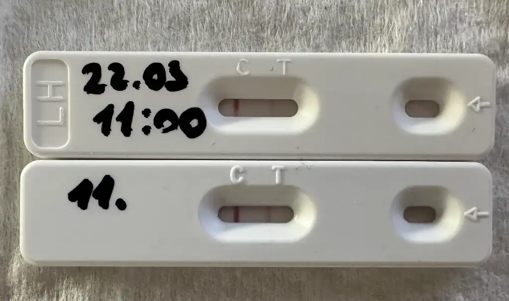 Kızlar selam bugün ki testim hala pik değil bence ama paylaşmak istedim. Bel ağrısı kasık ağrım olunca emin olmak adına laboquick ve eczaneden aldığım pyro clinice birlikte yapmak istedim. Üstteki laboquick. Premom uygulamasına da yükledim alttaki testi 0.17 low dedi. Sizinde fikrinizi almak istedim.