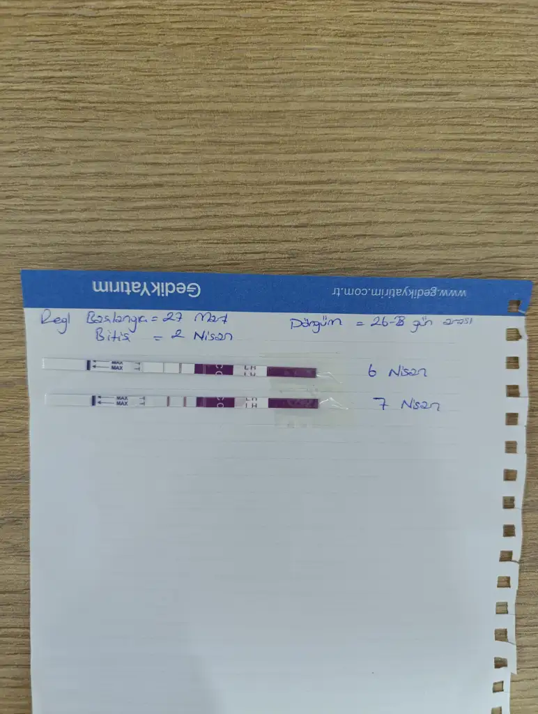 Selam, ben ovülasyon testi kullanmadım ama kullandığım uygulamaya göre tam olarak tarihlerimiz aynıhenüz test yapmadım, bende negatif olur moralim bozulur diye yapmıyorum. Ama her an adet olacakmış gibi hissediyorum tabi psikolojik de olabilir