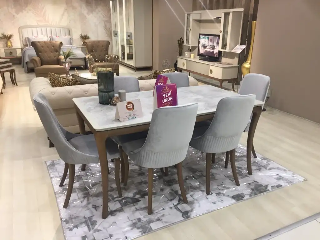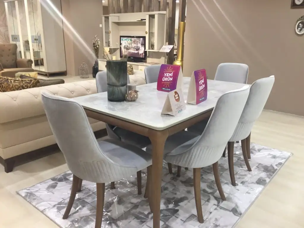 Biz yeni düğün yapacağız çoğu şeyi kafamızda belirledik mobilya olarak sadece yemek masamız kaldı. 2 tane masa olmasın dedik evimizde tek bir masa alalım onu da mutfağa koyalım dedik. Şu takımı beğendik mutfağımız 12m2 350 cm eni, boyu 371 cm