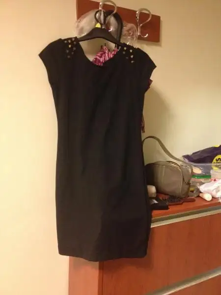 Siyah yakaları altın rengi zımba süslü olan elbise M beden giyen birine uygundur. Çok mini değil boya göre diz üstü veya diz hizasında değişebilir.