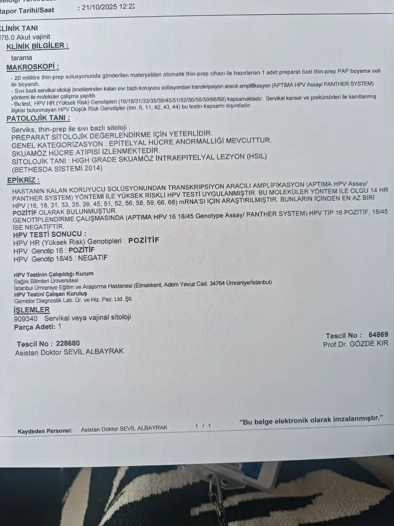• Yüksek riskli HPV pozitifliği saptanmış.