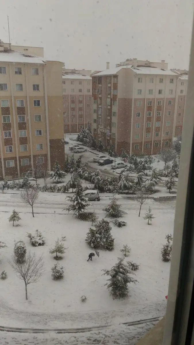 Burda yine kar yağıyor yeri tuttu cookkkk güzel bir manzara var