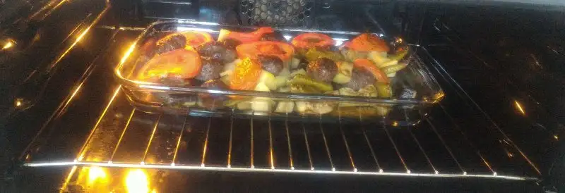 Salça ve sıcak su ile sos yapabilirsinyok üstüne sos yapmadım. Sos ne yapılır ki, köfteyi fırınla dedin ya sen, sadece sıvıyağ koydum o yüzden