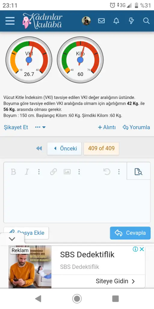 Kendi kilo cetvelim alanına senin bilgilerini girdim bakalım ne çıkmışbeden kitle indeksimle ilgili fikrin var mısudem34 cüm.