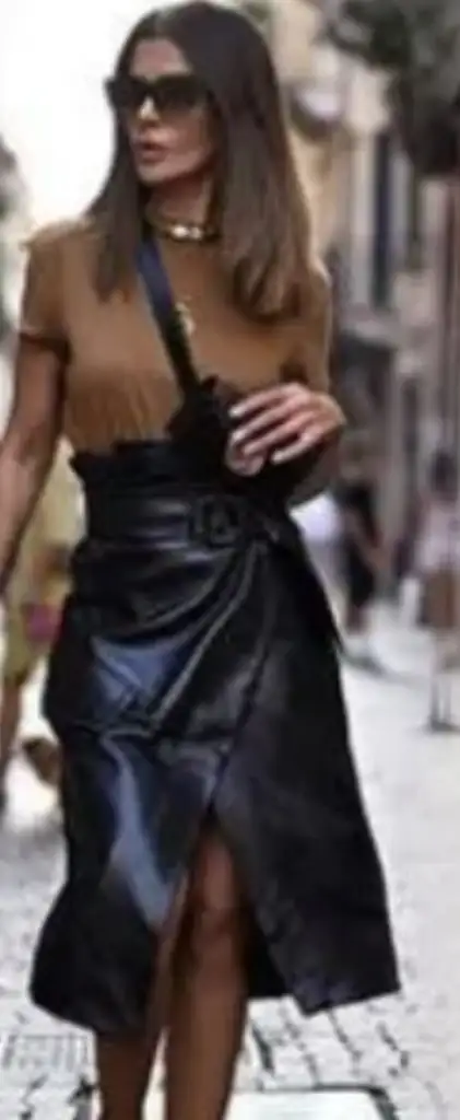 Sarah tarzın konuşuyor yineBen deri etek kombinleri ve triko takımları çok severım ve kullanırım