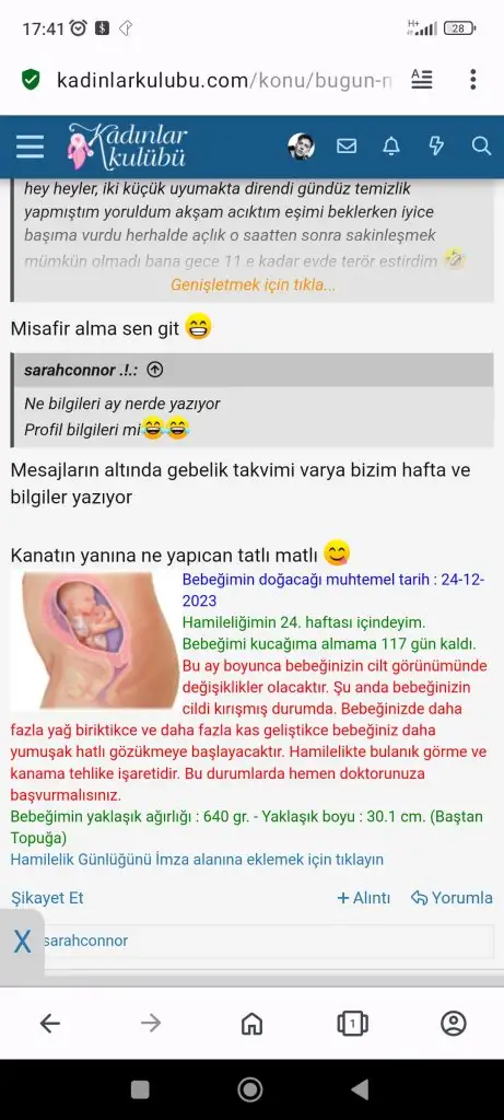 Mesajların altında gebelik takvimi varya bizim hafta ve bilgiler yazıyor