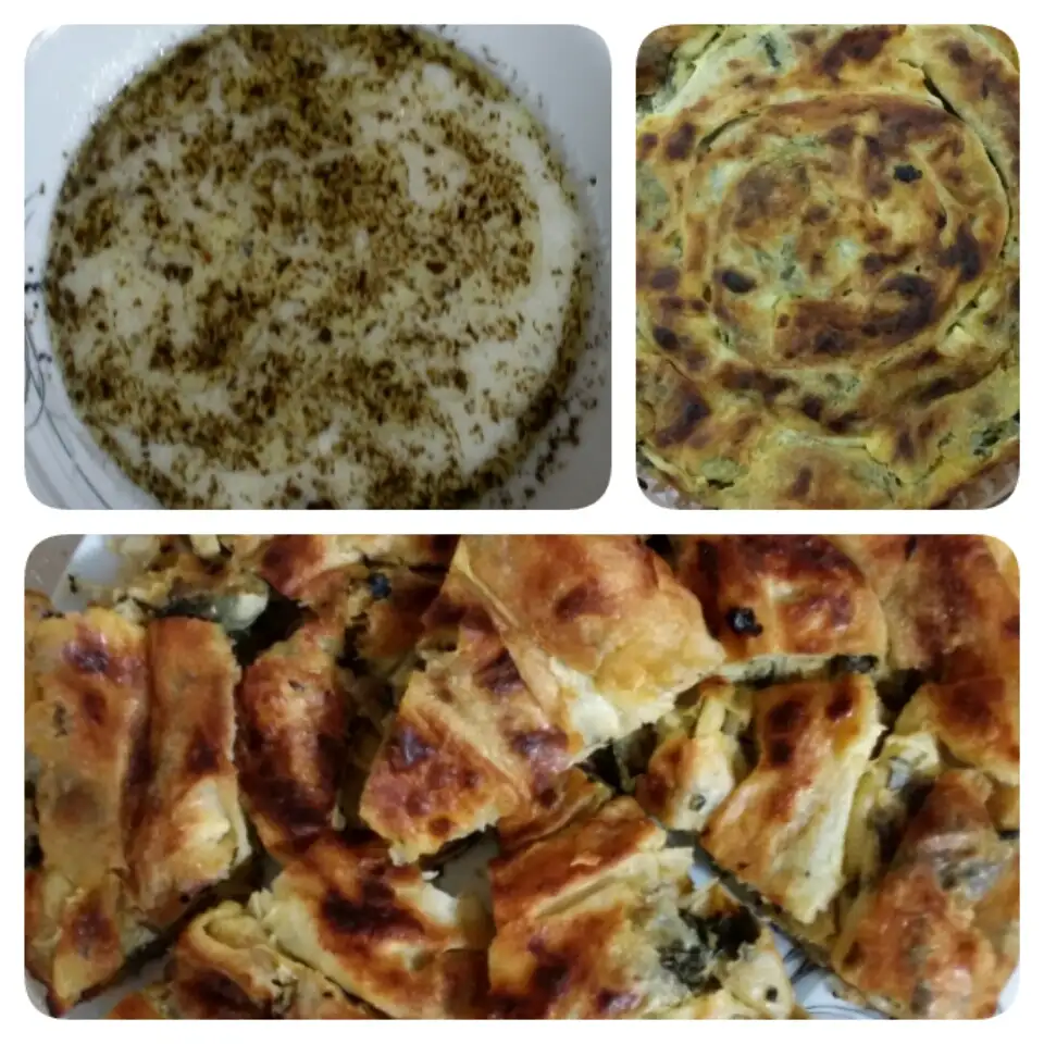 Misss gibi ıspanakli börek (peynir-sogan icerisinde) birde yayla çorbası birde püskevitli pasta![]()
