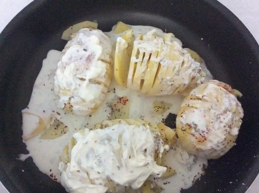 Önceden kavrulmuş soğan ve kıyma tuz, karabiber ile tatlandırılmış,