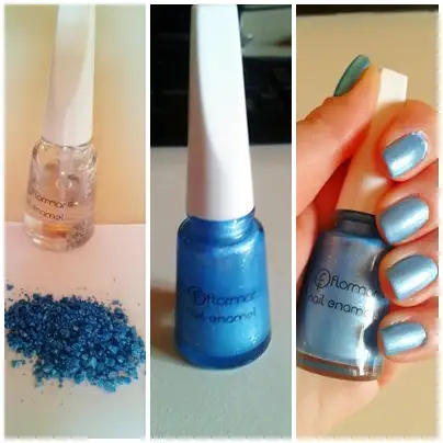 evet canım ben yaptım,resimde anlatmaya çalıştım aslında,kullanmadığım mavi farı un haline getirip,renksiz ojenin içine attım ve çalkaladım,sonucu sewdimşu 3. maviyide mi sen yaptın? nasıl yaptın? sen yapmadıysan kaç numara o? bayılırım maviye:)