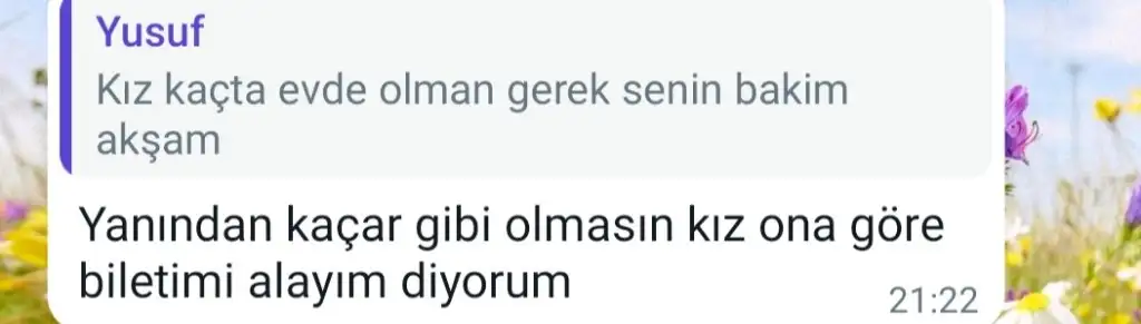 Iyi de adam size attığı mesajda kaçta evde en geç oluyorsun ona göre bilet alayım yanından kaçar gibi gitmeyeyim demiş, bilet alış saatini ayarlamaya çalışmış ne var bunda