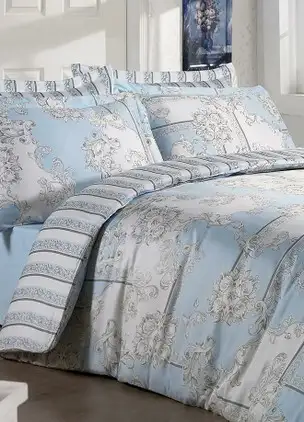 Taç living pamuk saten nevresim takımım( benımkı pembe grı kızlar en usttekı yastığın renginde olan)