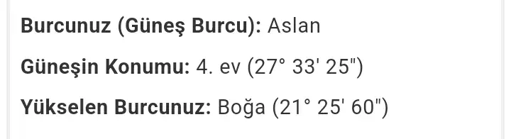 Ama genel konuştun daha detay alabilirmyimGüneşin yani aslan 4. Evdeymiş. Yani aile evi. Ailene karşı çok çok çok cömertsin. Elinden geleni yaparsın fazla korumacı olabilirsin. Yükselenin rahata biraz düşkün olduğunu söyleyebilir.