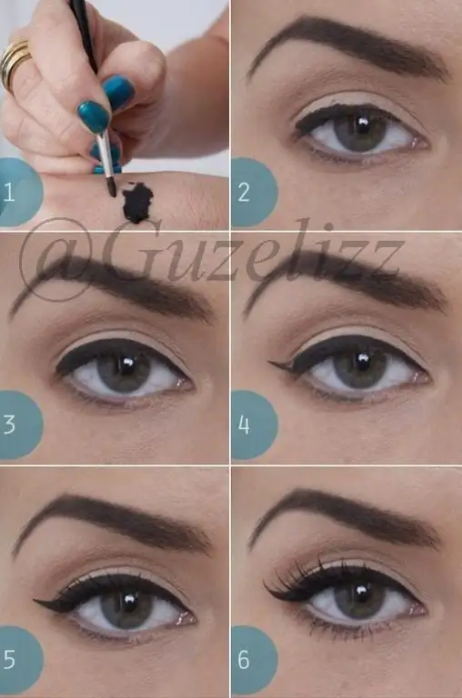 Eyelinerin kuyrugunu yapmadan, siyah goz fariyla alt goz kapaginizdan hafiften yukariya dogru bir cizgi cekin. Gozunuzun alt kipriklerini bir cizgi olarak dusunun, ve bu cizgiyi mumkun oldugunca uzatmaya calisin, yani kuyruk bu cizginin bir uzatimi olmasi lazim. Far ile cizgiyi cektikten sonra ustunden eyeliner ile gecin.