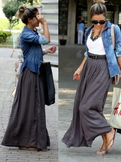 Uzun etek derken maxi etek kastettin sanirim. Nette bula bildiklerim bunlar, bu sekilde kombinleye bilirsin.