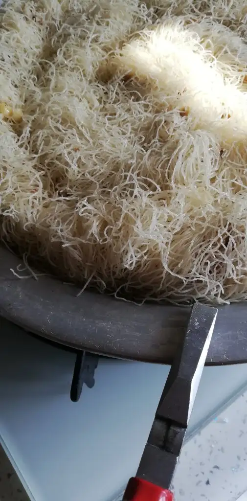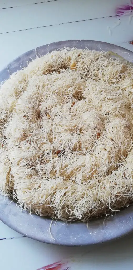 -Kadayıfları elimizle yapışık olanları elimizle havalandırıp açıyoruz.