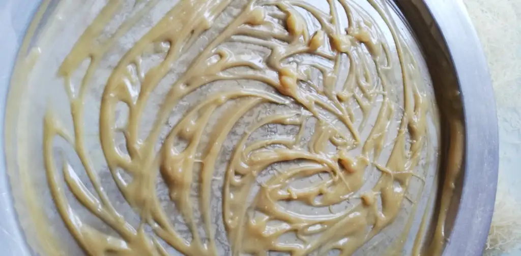 -Tepsimize 1,5 kaşık yağı ve 1 çay kaşığı pekmezi yedirip her tarafına sürüyoruz.