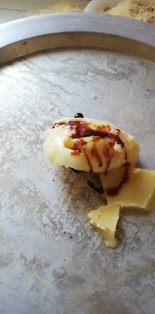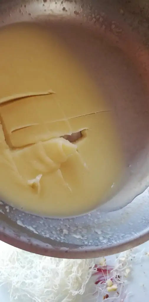 -2 kaşık katıyağ (eritip tekrar dondurduktan sonra içine çizik atıp içinde olan suyu döktüm, sade yağ elde etmiş oldum)