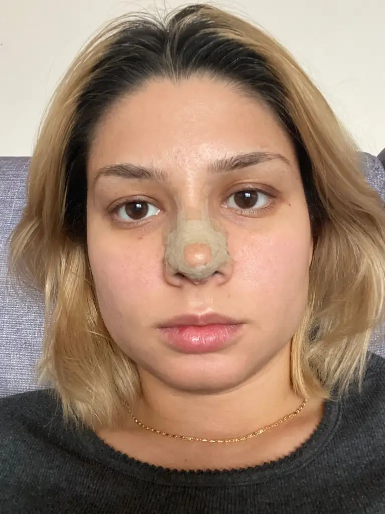 27 yaşındayım, hafif bir kemerim vardı, bir de burun ucu düşüklüğüm vardı özellikle güldüğümde burun ucum çok fazla öne düşüyordu. 13 gün önce İzmir Ekol hastanesinde burun ameliyatı oldum. Şuan için burnumla ilgili her şey yolunda gidiyor gibi. Sadece son 3 gündür burun içi çok fazla şiş. Günde 3 kez deniz tuzu ile yıkıyorum, uçlarına bepanthol sürüyorum ve günde 3-4 kez de burun içime nazalnem sıkıyorum. Açıkçası hiç burun masajı yapmadım, yapmaya da korkuyorum baskıyı yanlış yere verirsem, asimetrik yaparsam diye. Burun ucumun istediğimden kalkık olduğunu düşünüyorum, sizce bu burun ucu düşer ve iyice oturur mu? Lütfen fotoğraflarda saçlarımı ciddiye almayalım