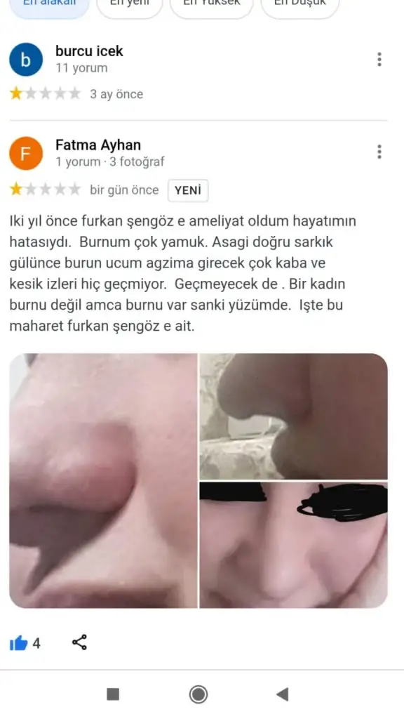 Googleye yazılan olumsuz yorumları siliyorburnunun ilk hali ve ameliyattan sonraki halini gosterir misin?