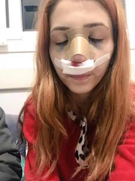 Buzla biraz kompres yaptık fakat aynaya baktığımda zaten çoktan morarmış olduğumu gördüm. Burnum tamamen tıkalıydı, tamponlarım vardı zaten. Fakat tamponlar burnumun içini çok rahatsız ediyordu. Aynaya baktığımda bez tampon takıldığını gördüm. Hemen doktorumu çağırıp silikon tampon istediğimi söyledim. Doktorum, silikon tamponun burnumu genişletebileceğini, bez tamponu yarın sabah çıkaracağını söyledi. O klasik tamponlar gibi beynime kadar gitmiyormuş zaten bunlar, burnumun ucunda küçük iki parça varmış sadece.