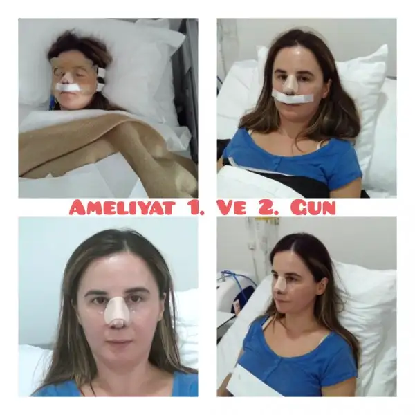 Kendi ameliyat sürecimi fotoğraflarla bir özetliyeyim dedim. resimlerden de anladığınız gibi hastanedeyken gayet iyiydim ameliyat günü hastanede kaldım ertesi gün taburcu oldum yine ıyıydım evde kaldığım ilk geceden itibaren ise biraz şişme ve morarmalar oluşmaya başladı ama yinede çok koyu morluklar değildi bunlar. gözümün üstünde biraz vardı. benim göz altlarım daha çok sararmıştı. 4. gün silikon tampon çıkarıldı. 10. gün ise burun alçım çıkarıldı. elimden geldiğinde masaj yapmaya çalıştım fakat ilk zamanlar çok acıdığını ıcın dokunamıyordum. sonra acı azaldıkça yapmak kolay oldu.1. ay kontolunden de sapasağlam çıktım ve 3. ay kontrolum ıcın taktım oluşturduk. hissettiklerime gelince hiç pişman olmadım fakat acabalarım oluştu düzelmişmidir diye. çünkü yılların verdiği bir burun eğrili yüzümün bile asimetrisini bozmuş vaziyetteydi daha 1. ayım olmasına rağmen yüzüm bile orantılı gözükmeye başladı sonraki ayları sabırsızlıkla bekliyorum. halen daha soldan resim çekilme alışkanlığım devam ediyoryavaş yavaş aşmaya çalışıyorum. istanbulda medient hastanesinde şahruz beye ameliyat oldum nakit 5000 tlye. oldukça ilgili güler yüzlü bır doktor ve net şekilde herşeyi açıklıyor.