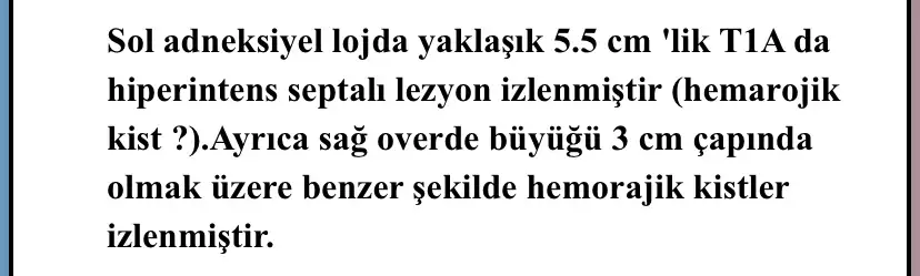 Evet ben de 18 ekimde çekildim numune de ama raporda ben anlamadım hiçbir şey yazmamışlar kistle alakalı sanki kistin yokmuş gibi anlayamadım benim 25 Ekim Cuma yüklenmiş sanırımSiz de mi 18 Ekim günü çekildiniz MR ı ve sizin hangi gün çıktı sonuç bilgi verebilir misiniz