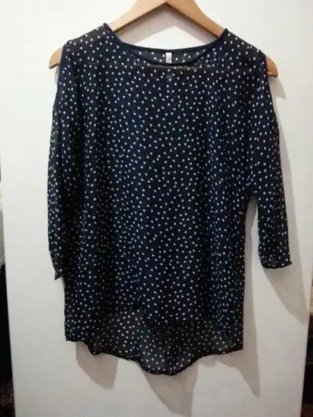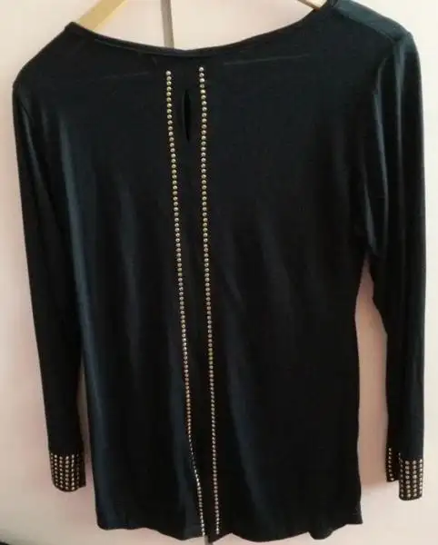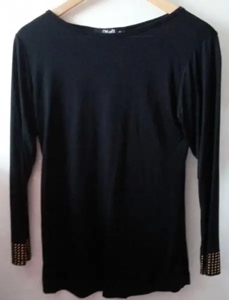 vee ilk resim.. Deneme haricinde hiç giyilmedi. Penye 38 beden siyah. Kol kısımları zımba detaylı 2. resim arka kısmı (önü düz arkası aşşağıya doğru zımba detaylı) 20TL
