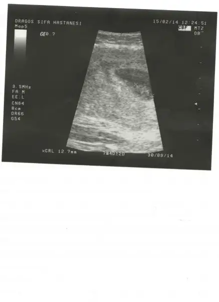 burdan bişi anlaşılmıyo ki:) sen yakından bak benimkinin 5 haftalık ilk ultrasonunda nasıl tarif edeyim bir yuvarlak var tam ortadan düz bi çizgi