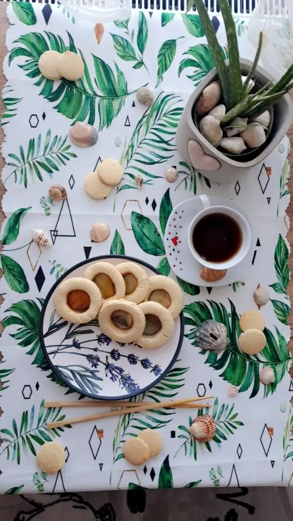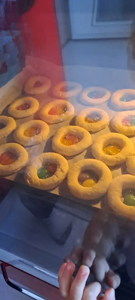 Kurabiyeyi yaparken ben yanlışlıkla 1 paket kabartma tozunu döktüm o yüzden fazla kabardıklar ama yine de sekerler eriyene kadar kurabiyeler de pişmişti.
