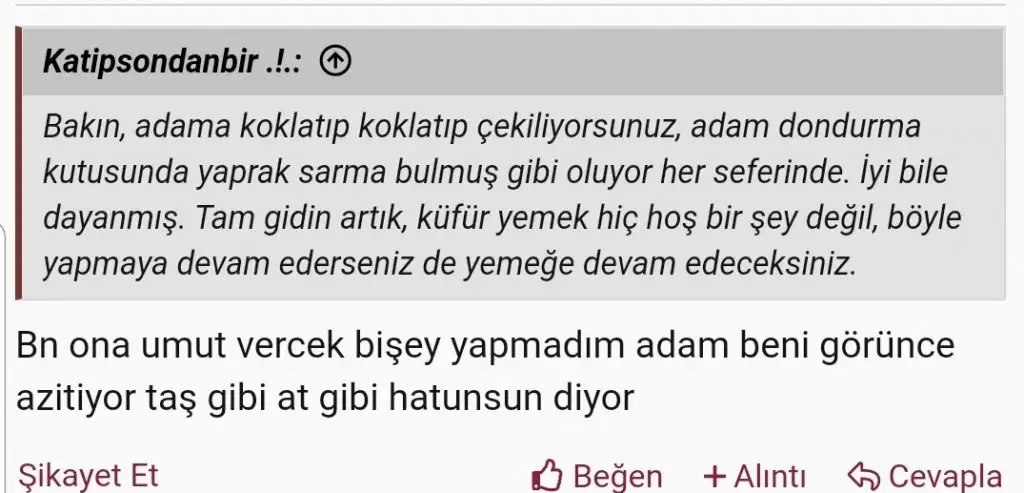 Aynen simdiddn böyle olursa evlenince bişey kalmaz bu adamı tanımak istiyorum aktivite yapmak istiyorum onun amacı dokunmak başka bir açıklama yokHayatım, o öyle olduğunu düşünüyor, kolay kolay fikrini değiştirmez. Değiştirenini görmedim zaten şimdiye dek.