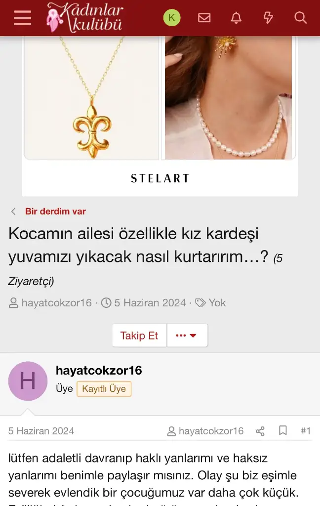 Senin sıkıntın yuvan kocan. O yüzden işine gelmeyen yorumlar alıyosun. İçinin burulmasına da bişey yapamazsın. Burulur burulur oturursun. Kolay gelsin. İyi akşamlar.