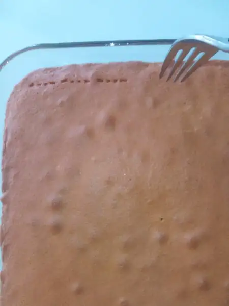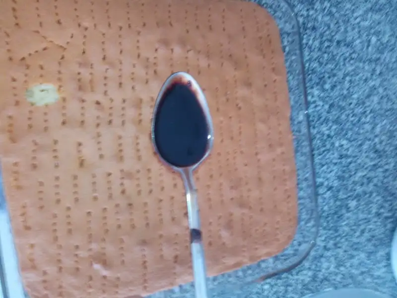 Kek ve sos spguduktan sonra çatalla donattıgmız kekin üzerine dökülür