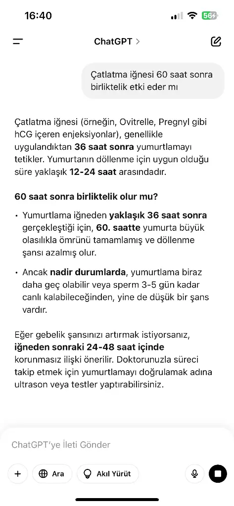 Kızlar merhaba Bir şey sormak istiyorum sizlere ben cuma günü ikindi saat 4'te çatlama iğnesi vurulmuştum yumurta 20mm di evde değildik kayınvalideme gitmek zorunda kaldım için de 12 saati 36 saati değerlendiremedim cumartesi günü ikindin 5de yanı hesaplamama göre sadece 26 saati ve iğne vurulduktan sonra ki 60 saati değerlendirebildim oda pazari sabaha bağlayan gece sabah 7 birliktelik oldu oda yumurta çatladıktan sonra ki 24. Saate geliyor kalma ihtimalim olabilir mi acaba ağlamaktan harap olduğum saatleri tutturamadım acaba gebe kalamam mı diye çünkü bu ay bayağı umutluydum Bir de kızlar pazartesi günü ikindi bayağı koyu kıvamlı bir akıntı yaşadım acaba sabahki birliktelikten dolayı mı yoksa başka bir şeyden mi o da kafama biraz karıştırdı ayriyeten bugün kasık ağrım başladı