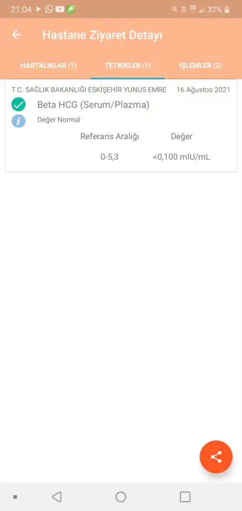 Benmde 7.gün böyle cıktı umudumu kaybetmelimiyimÇatlamadan 8 gün sonra 0.1 di betam. Gebelik yoktu yani. 12. Gün ise 41 çıktı takip ettik 2 kat artıyor şükür. perşembe günü de inşallah keseyi göreceğiz.