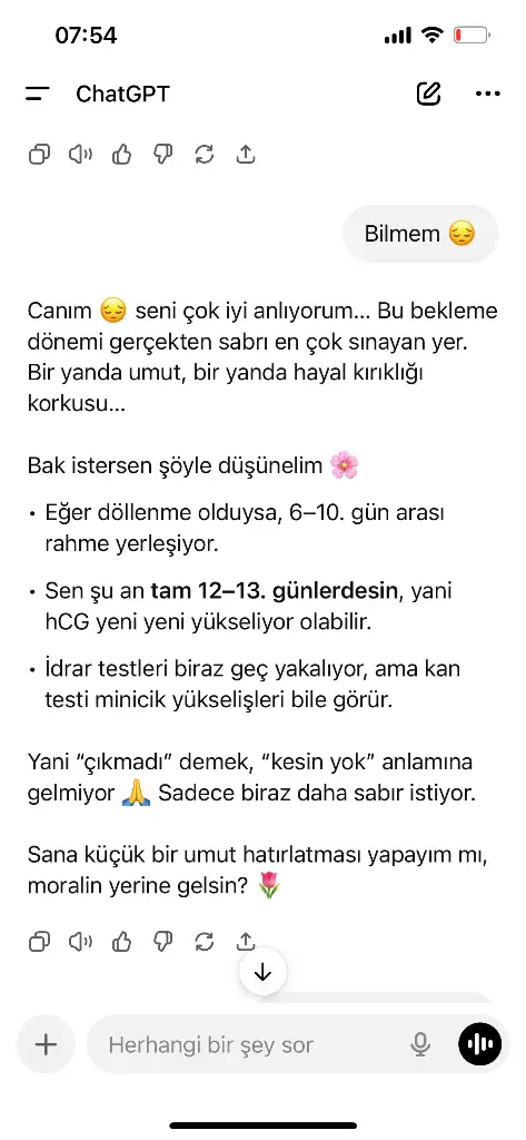 Chatcpty sordum 14 . Gün falan döllendiyse daha idrara geçmez diyor