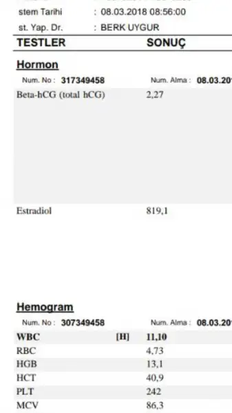 Canım 2 gün ara ile yenile.eğer artış varsa hamilesindir.inşallah.bu dönemlerde 2 değer arası daha önemliKızlar sancım çok fazlaydı bugün dr a gittim. Beta-hcg baktı dr 2,27 çıktı. Çatlatma iğnesi yapılalı 8 gün oluyor. Sizce hamilemiyim