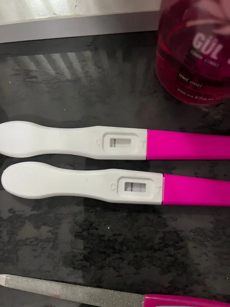 Zaten 7. Gün yaptığında 6.3 çıkmış bugünde koyulaştığına göre hcgde yükselmiştir ilk deneme mi senin ?Üstteki test 7.gün alttaki bugün sabah yaptıgım test