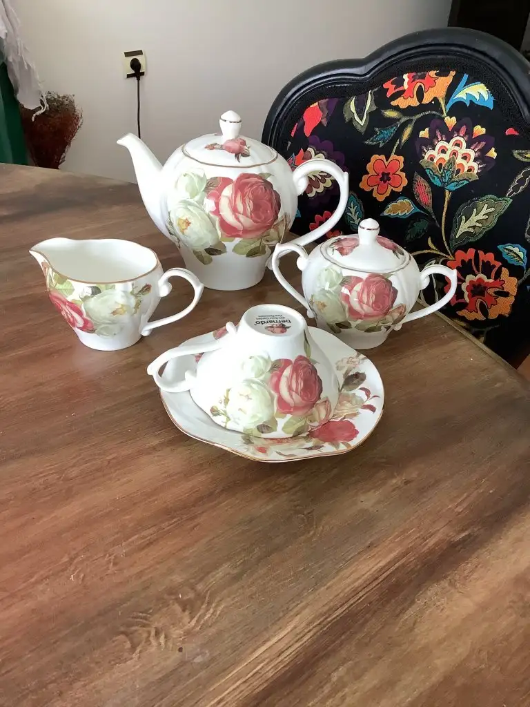 Yemek takımıda bernardo olup 6 kişiliktir maksimum 2 kere kullanılmıştır bir tarafın arka kısmında küçük kırık vardır sanırım taşınırken oldu.
