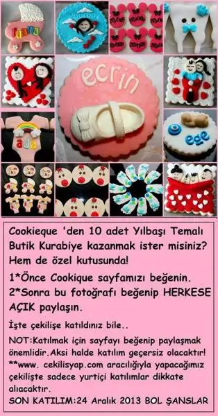 kızlar merhaba ben de kampanyalara başlıycam artık ilk çekiliş duyurumu yapayım.Yılbaşında iyi gider.Bayılıyorum bu butik kurabiyecilere ..Yetenek olsa yapardım.