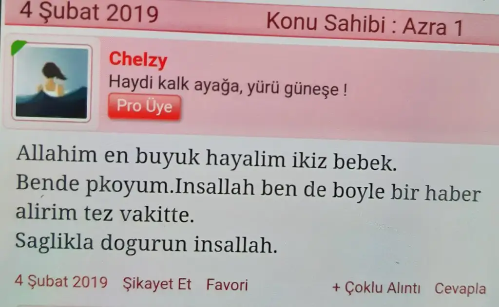 Harika bir haberHic inanmazdim boyle seylere ta ki şu hep saklayacagim,arada acip bakip iyiki sunu yazmisim diyecegim yaziyi yazana kadar.O gün o başlıkta öyle içten istemişim ki bu mesaji ve artik evrene gondermek mi ne oluyorsa bu yazdiktan 12 gün sonra süpriz bir sekilde hamile oldugumu 20 gün sonra da ikiz olduklarını ögrendim.❣❣