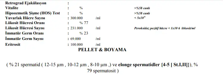 Bizimkide sebebsiz. Fsh hormonu biraz yüksekti ve testesteron az. Testis yetmezliği diye ifade ediliyor genel olarak. Genetik olarak herhangi bir sıkıntı yok. Tıkanıklık vs yok ama azospermi. Ne zaman sonuç alırız Allah bilir. İşimiz biraz zor. Sözde hoca mesaya hazır ol dedi telefonda ama onda da çıkar mı zor bir ihtimal. Bu ay içinde gidip tekrar test verecek yaklaşık 4 ay oldu eski testimizden beri. İnşallah ilerleme olmuştur. Allah hepimizin yardimcisi olsun.sizin azosperm sebebi nedir