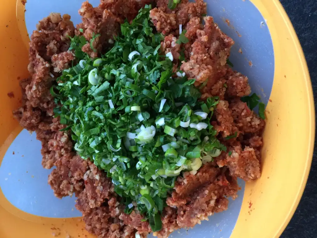 Mercımegı yıkayıp ıkı bardak suyla haslıyoruz bulguru atıp altını kapatıyoruz bıraz dınlendırıyoruz Eki Görüntüle 1404904 Soguyunca once salca ve baharatları katıp yoguruyoruz sonra yesıllerı Eki Görüntüle 1404905 Eki Görüntüle 1404906 ve bıraz lımon suyu zeytınyag katıp az daha yoguruyoruz ve sekıl verıp servıse hazır..