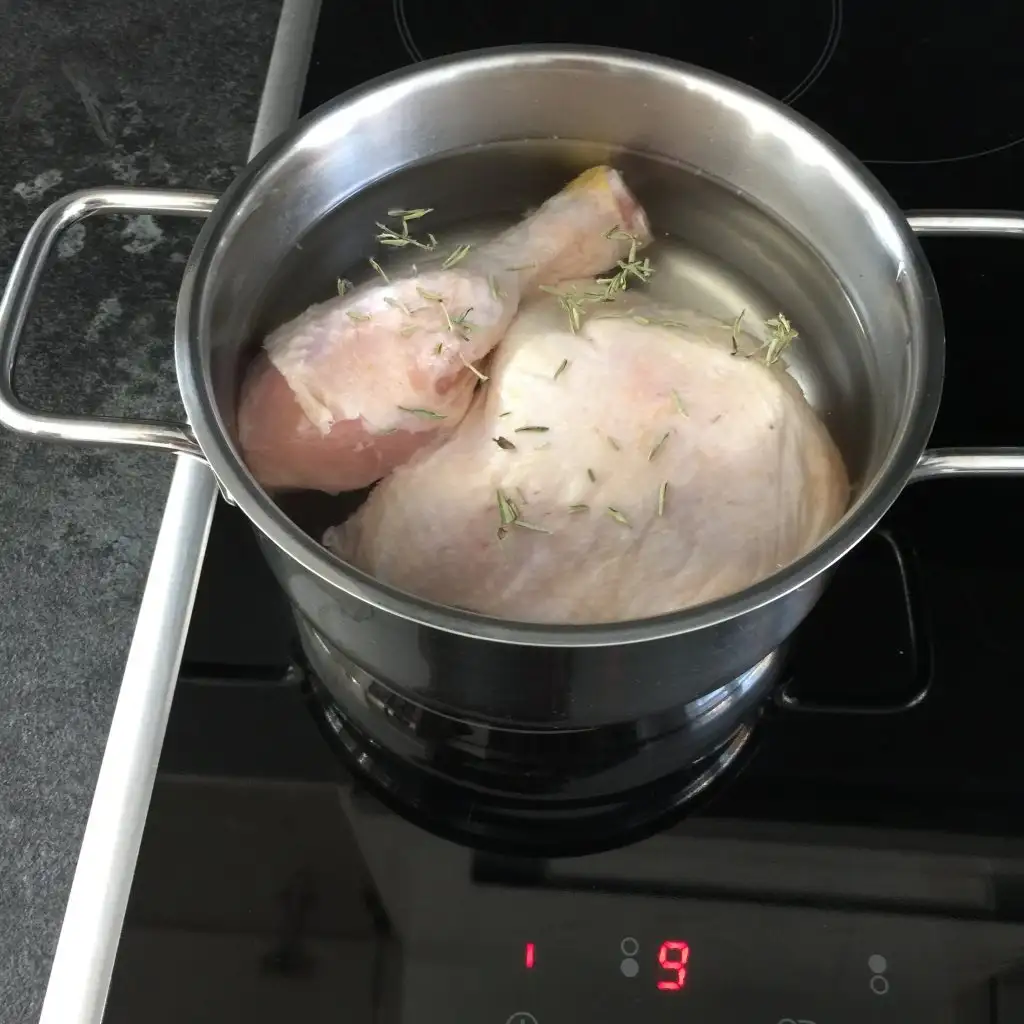 Tavuk butu 2,5 bardak suyla ıyıce yumusayana kadar haslanır .