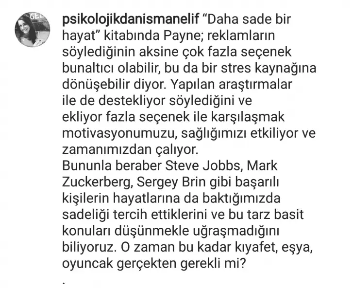 Bugün bir psikoloğun sayfasında bu yazıyı görmüştüm. Ben de doğum yaptığımdan beri henüz tüm kilolarımı veremediğim içinkendimi motive etmek adına kıyafet almadım eski bedenime geri dönücem diye kafama koydum. Sonra baktım ki aslında çok fazla kıyafetim varmış. Hiç olmayacak olanları ayırdım kullanmamak üzere, sadeleşti dolabım . Artık sürekli ne giysem diye düşünmüyorum çünkü yapılabilen kombin sayısı sadece 6 Ve bu durum inanın beni çok rahatlattı . Yine de istiyorsanız çeşit çeşit giyinmek Allah kazancınızı arttırsın :)