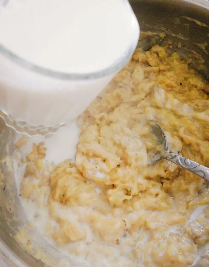 Ocağın altı iyice kısılarak süt yavaş yavaş karıştırarak patlıcana ilave edilir.
