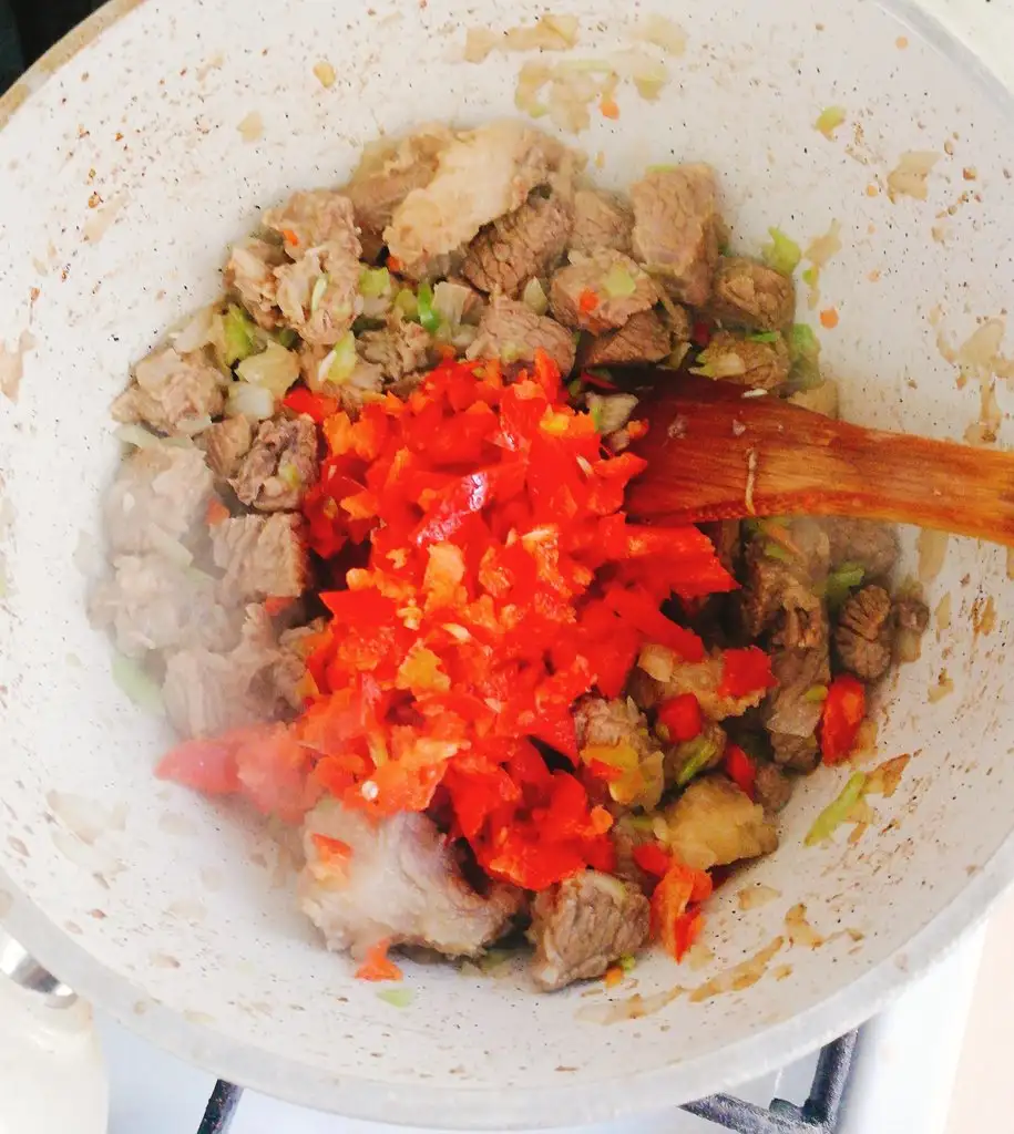 1,5-2 su bardağı su da göz kararı eklenerek kapağı kapatılıp etler pişene kadar pişirilir.