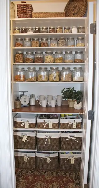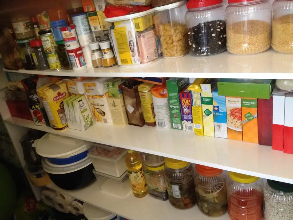Bence öncelikle raflara örtüSonra şu alt kısımdaki kapakların renkleri birbirinden farklı görünmesin diye onlara şu ev tipi reçellere yapılan kavanoz başı örtülerinden. Sonra o kutulu şeyler kutulu kalacaksa görünmesin diye sepetlerin içine konabilir, bayatlamayacak şeylerse onları da bakliyat kavanozlarına veya plastik kaplara koyabilirsin